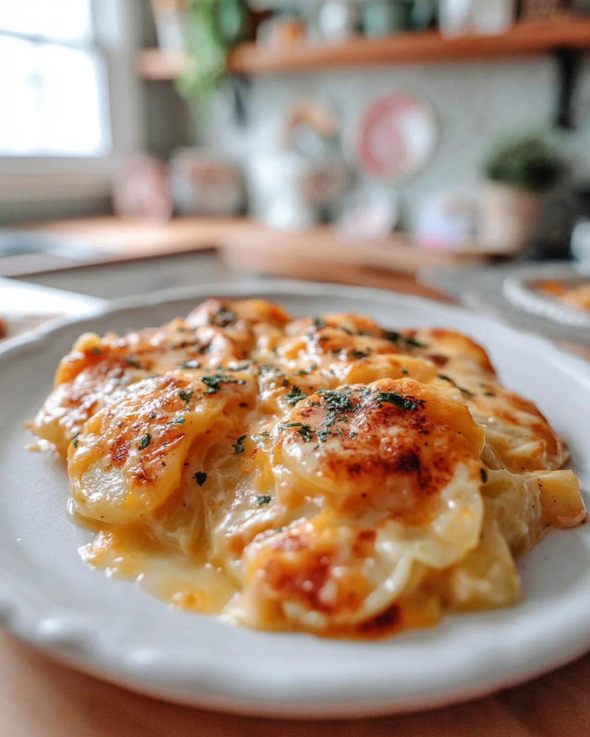 Crowd-Pleasing Flavor: With layers of creamy cheese and tender potatoes, it’s sure to be a hit with family and friends. The combination of melted cheese and perfectly cooked potatoes is universally enjoyable, making it a safe bet for pleasing even the pickiest eaters at your table.