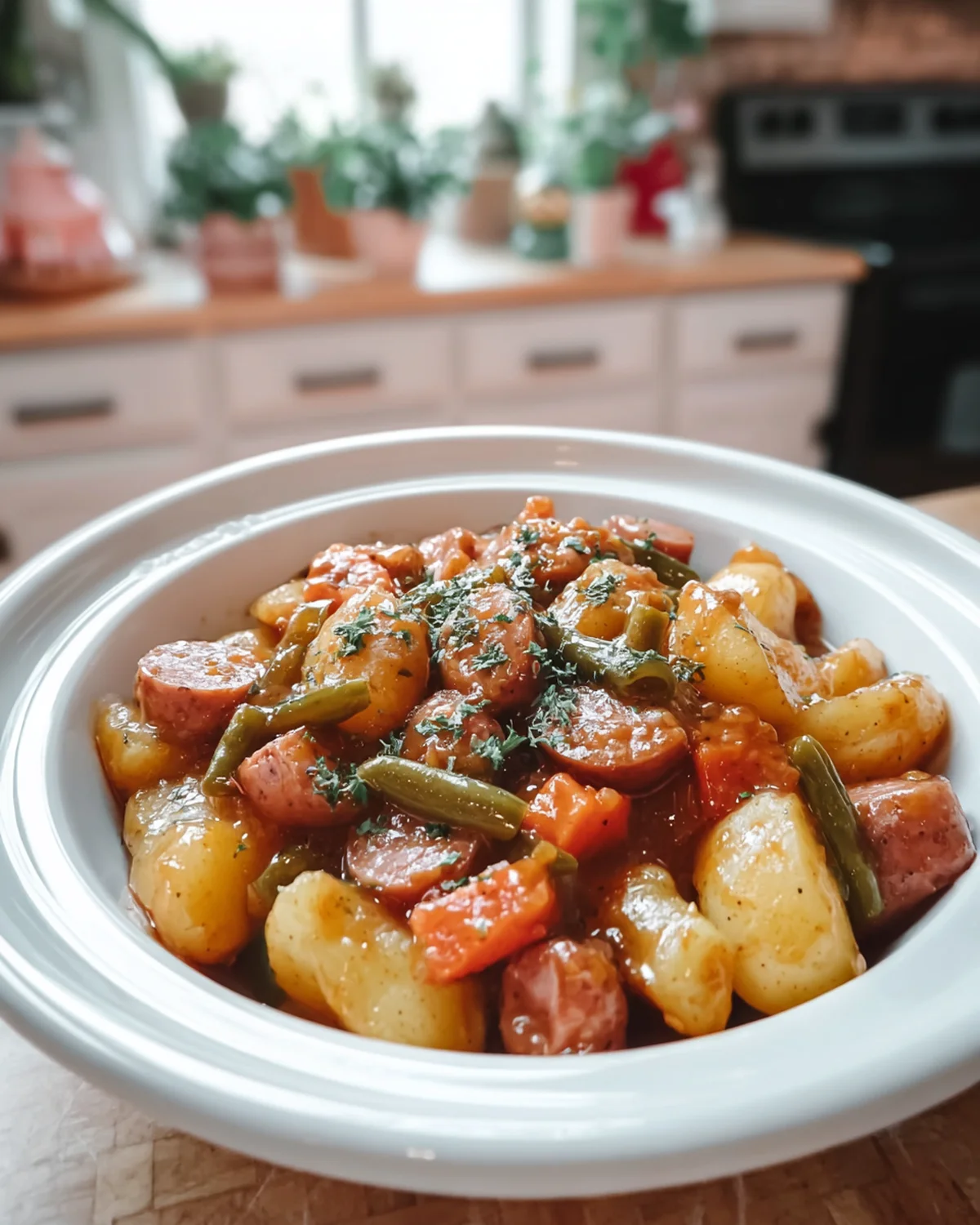 There’s something deeply satisfying about a meal that practically cooks itself, allowing you to savor the anticipation as your house fills with the rich, buttery scent of slow-cooked goodness. This recipe is a beautiful blend of simplicity and heart, perfect for those days when you want to nourish your loved ones with minimal fuss. Imagine coming home after a long day, greeted by the savory aroma of smoked sausage mingling with tender potatoes and fresh green beans. It’s a hug in a bowl — the kind of meal that lets you unwind and reconnect with everything that truly matters.