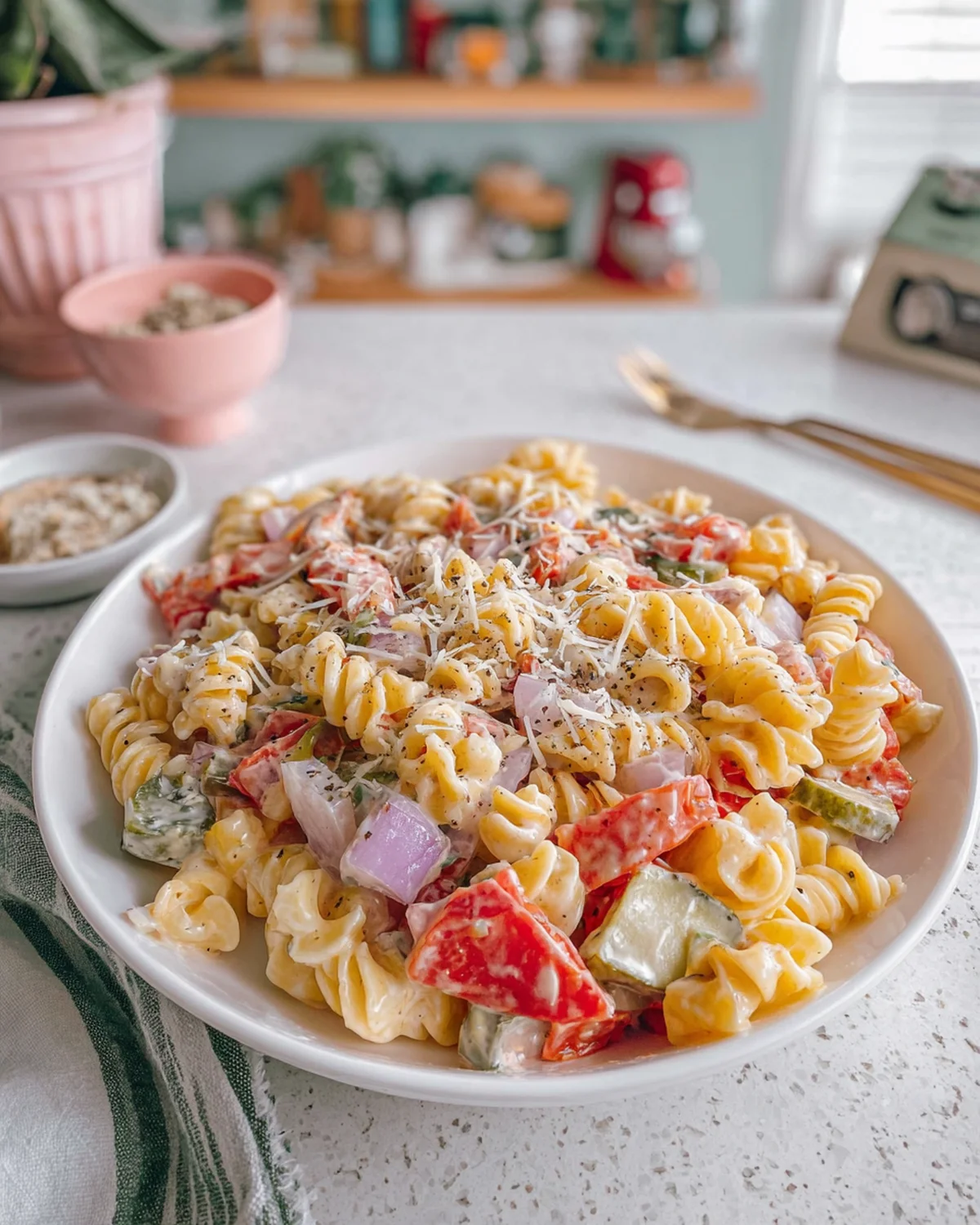 As you savor each bite of this delicious pasta salad, I hope it brings you the same warmth and joy that it has brought to my family over the years. Remember, the kitchen is not just a place to cook, but a place to create memories, share laughter, and celebrate the simple pleasures of life. Whether you’re a seasoned home chef or just starting your culinary journey, this recipe is a testament to the love and comfort that comes from homemade cooking. So, gather your loved ones, share a meal, and cherish the moments spent together — because that’s what truly makes a home.