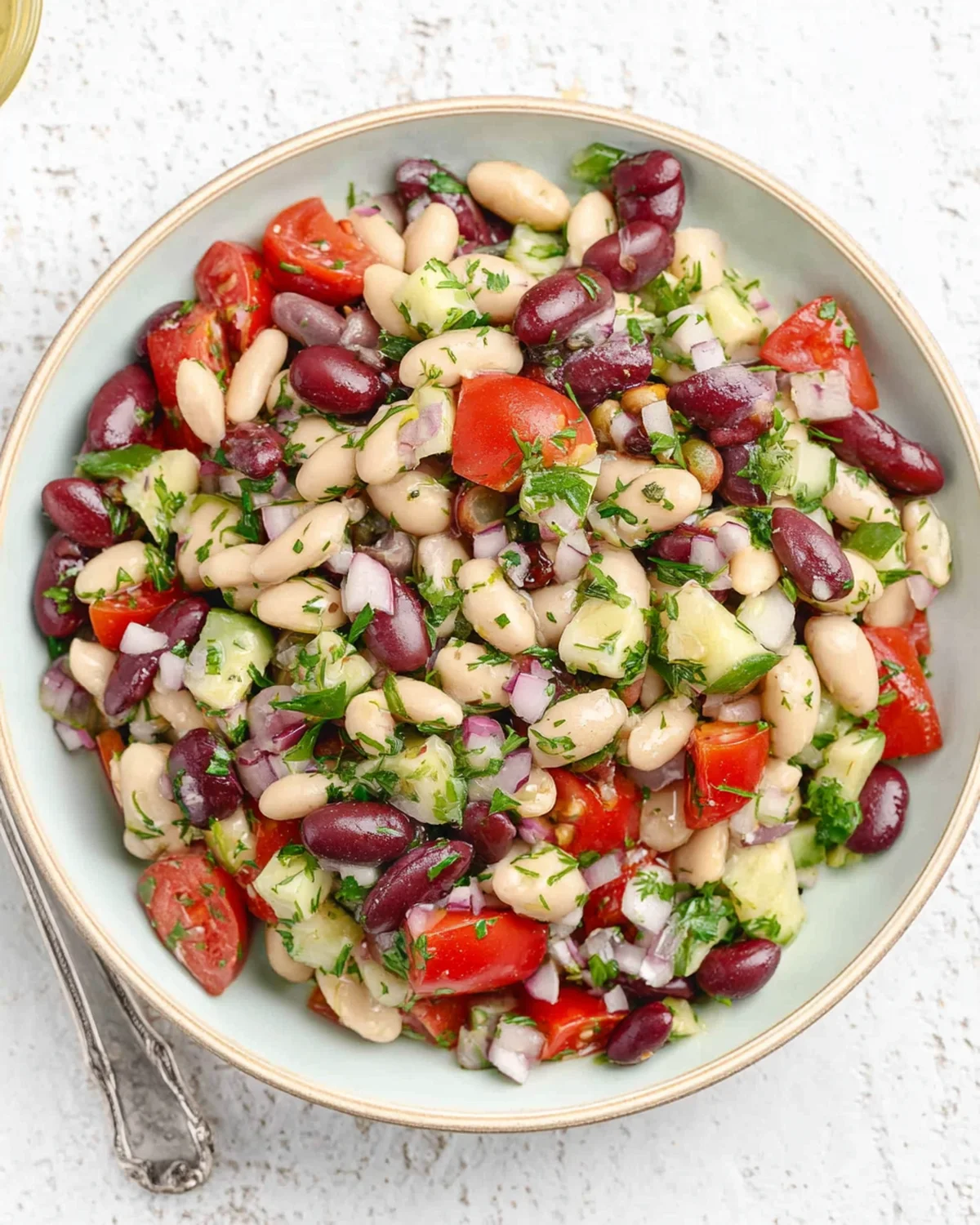Sometimes, when the world feels a bit too fast-paced and hectic, I find myself yearning for the simpler days of childhood summers. Those were the days spent in my grandmother’s sunlit kitchen, where love was the main ingredient in every dish. One of my fondest memories is of her Mediterranean Bean Salad — a dish so vibrant and full of life, much like the laughter shared around her table. With its crisp veggies, hearty beans, and zesty dressing, it was a staple at every family gathering, offering a symphony of flavors that danced on our taste buds. This salad is more than just a recipe; it’s a comforting embrace, a reminder of the joy found in simple, homemade meals.