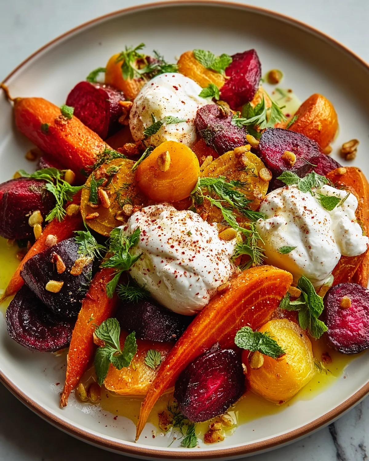 - Flavor Harmony: Earthy, sweet, and creamy — the combination of roasted vegetables with burrata and a tangy dressing is like a symphony of flavors in every bite. The sweetness of the carrots balances the earthiness of the beets, while the burrata adds a creamy richness that ties everything together.